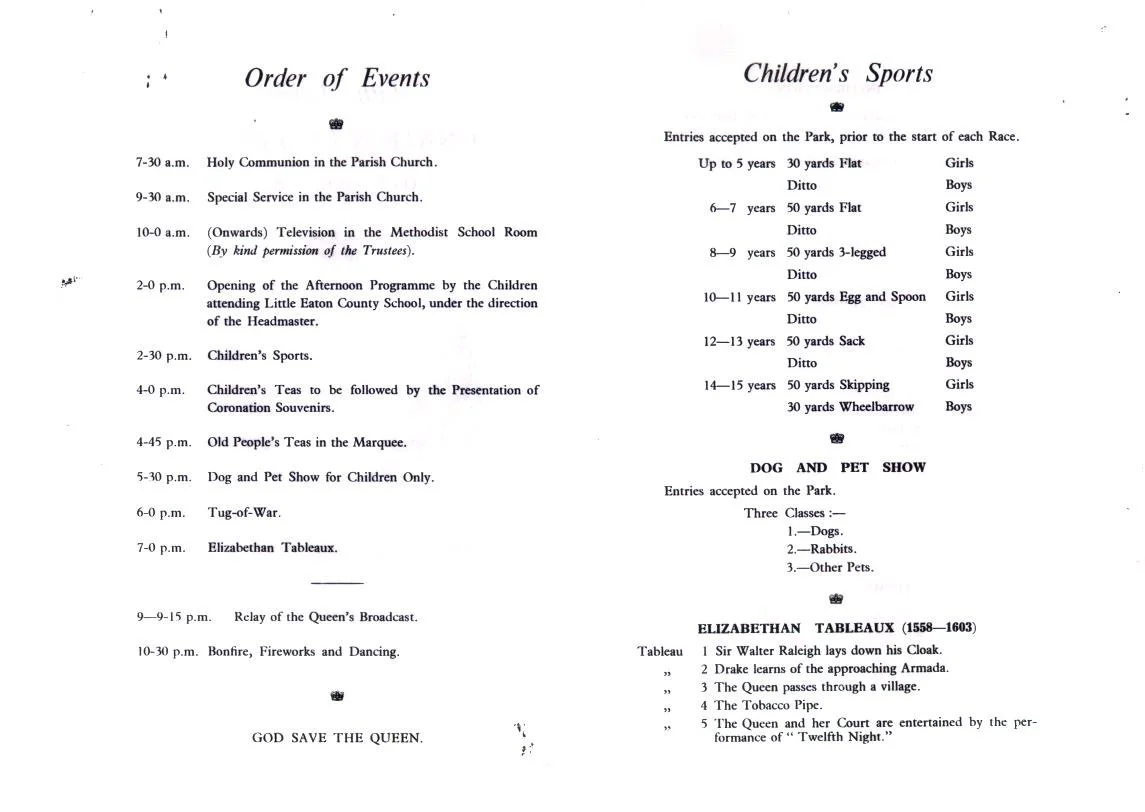 Jim Coley from the Outwoods garden provided a bouquet for the Carnival queen, and the pattern was set for Little Eaton Carnival and Sports Day in its present form.