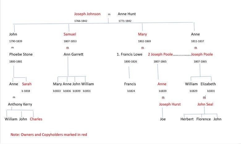 After their parents died, the house went first to Samuel Johnson and his wife Ann (nee Garrett). Then to his sister Mary, who took over the copyhold when Samuel died in 1853. She was by then the wife of Joseph Poole.